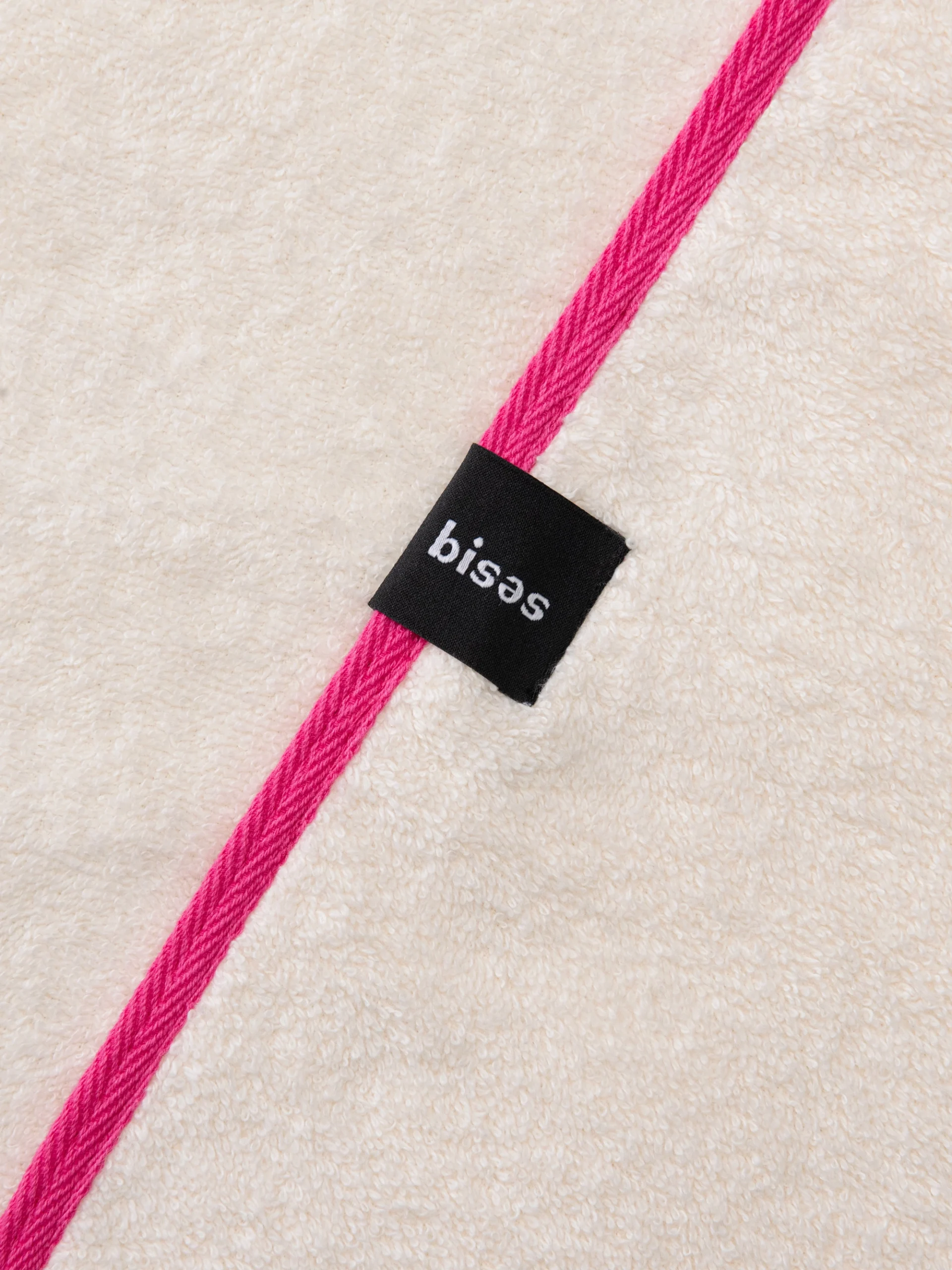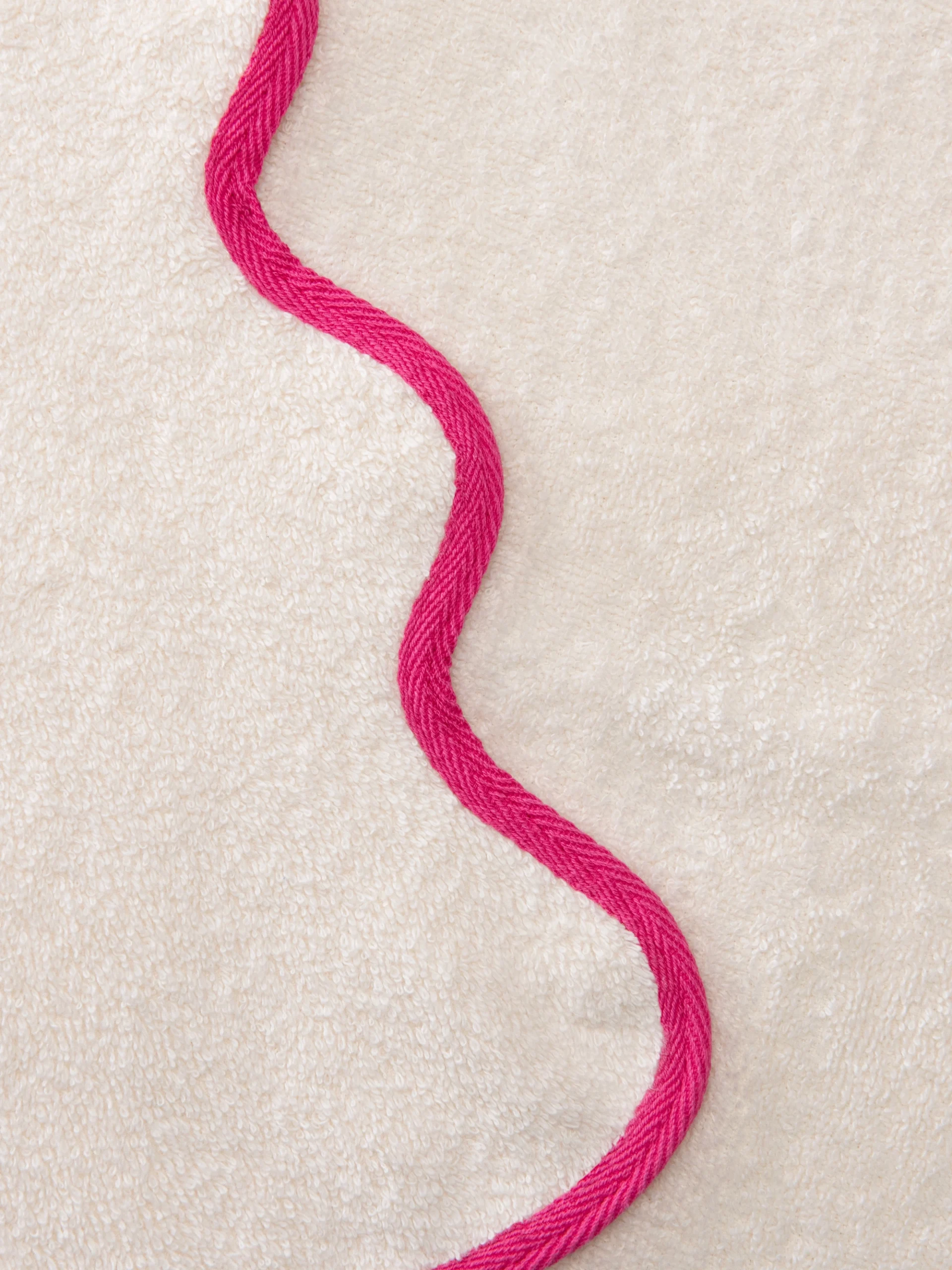 Waves Bath від Bises — банний рушник, що поєднує природну м’якість бавовни, функціональність і виразний дизайн. Хвиляста кольорова окантовка додає виробу характеру та робить його стильним акцентом у просторі ванної кімнати.