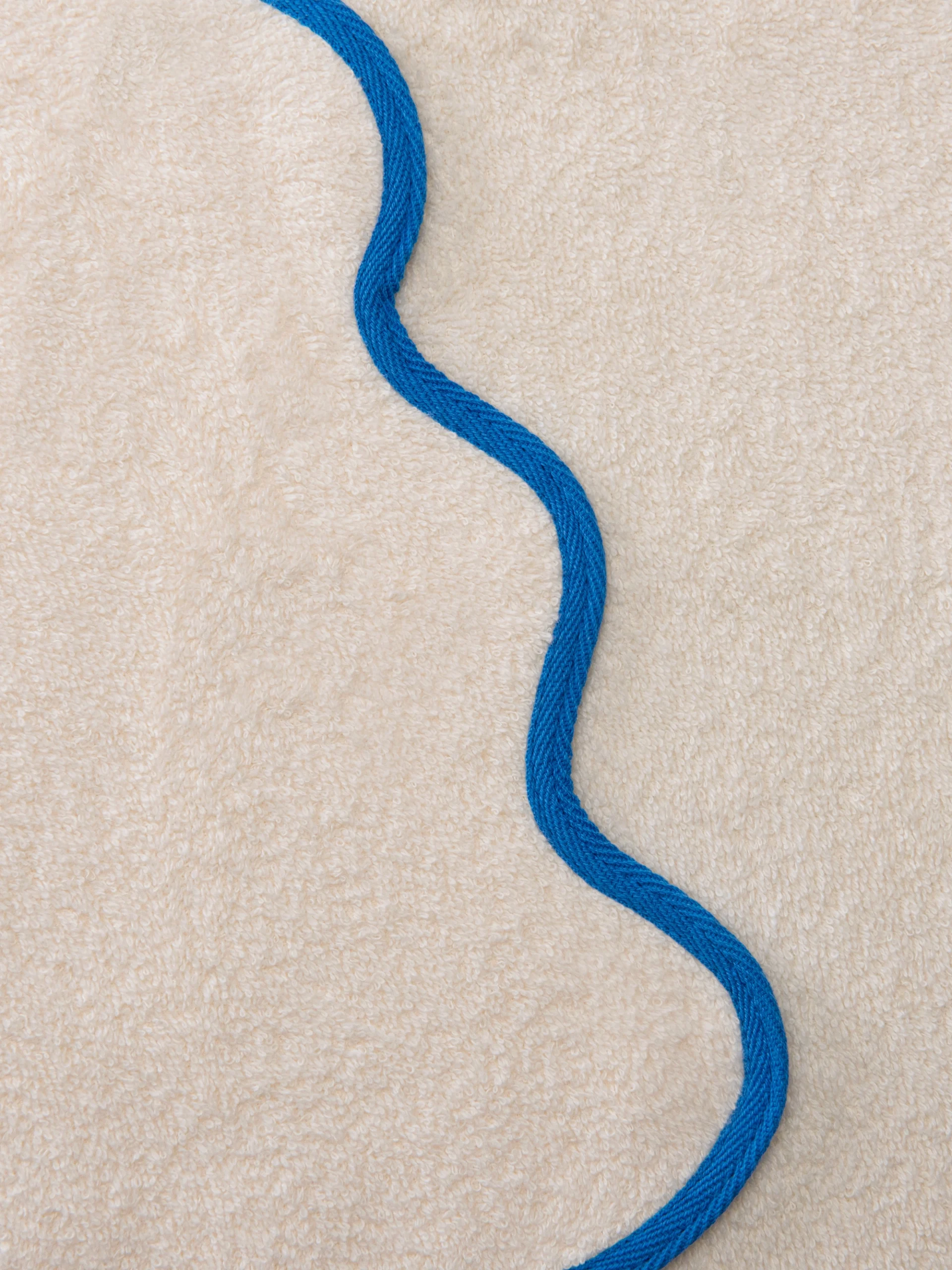 Waves Bath від Bises — банний рушник, що поєднує природну м’якість бавовни, функціональність і виразний дизайн. Хвиляста кольорова окантовка додає виробу характеру та робить його стильним акцентом у просторі ванної кімнати.
