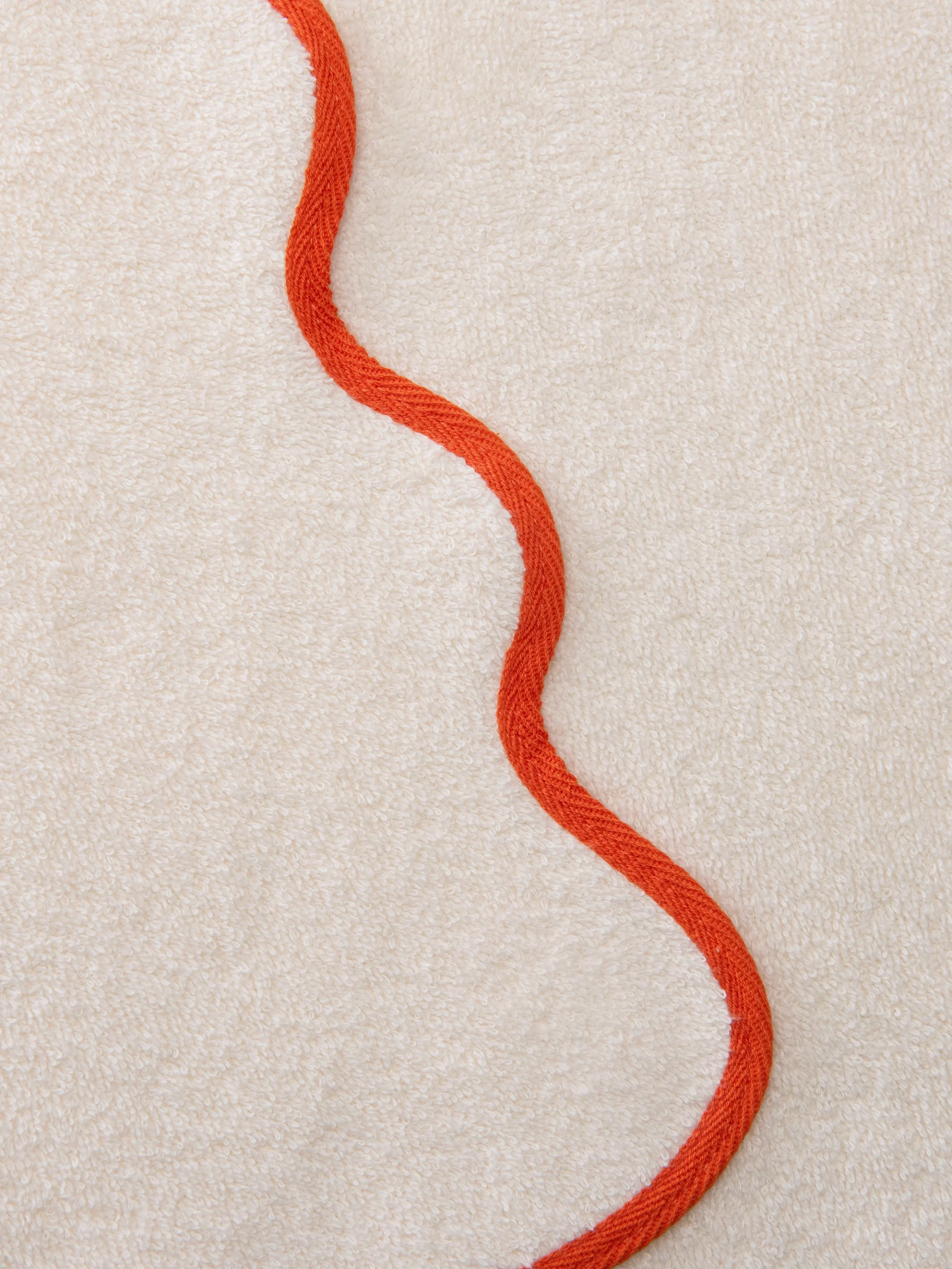 Waves Bath від Bises — банний рушник, що поєднує природну м’якість бавовни, функціональність і виразний дизайн. Хвиляста кольорова окантовка додає виробу характеру та робить його стильним акцентом у просторі ванної кімнати.