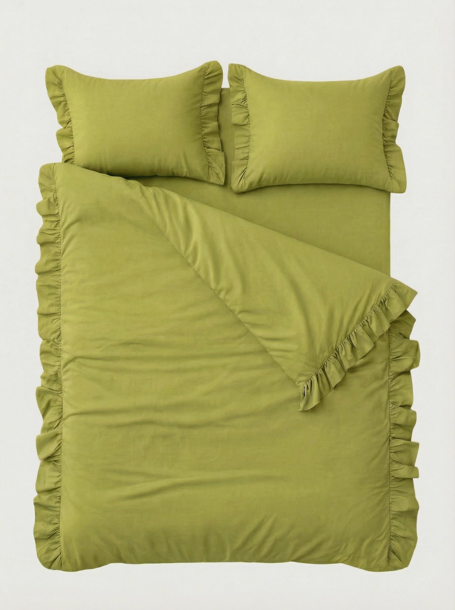 Calm Collection від Bises — це постільна білизна з вареної бавовни преміальної якості, яка створює атмосферу тепла й комфорту, а ніжні рюші по боках додають об’єму, легкості та вишуканого шарму. Ця колекція — для тих, хто цінує невимушену елегантність і природну красу у деталях.
